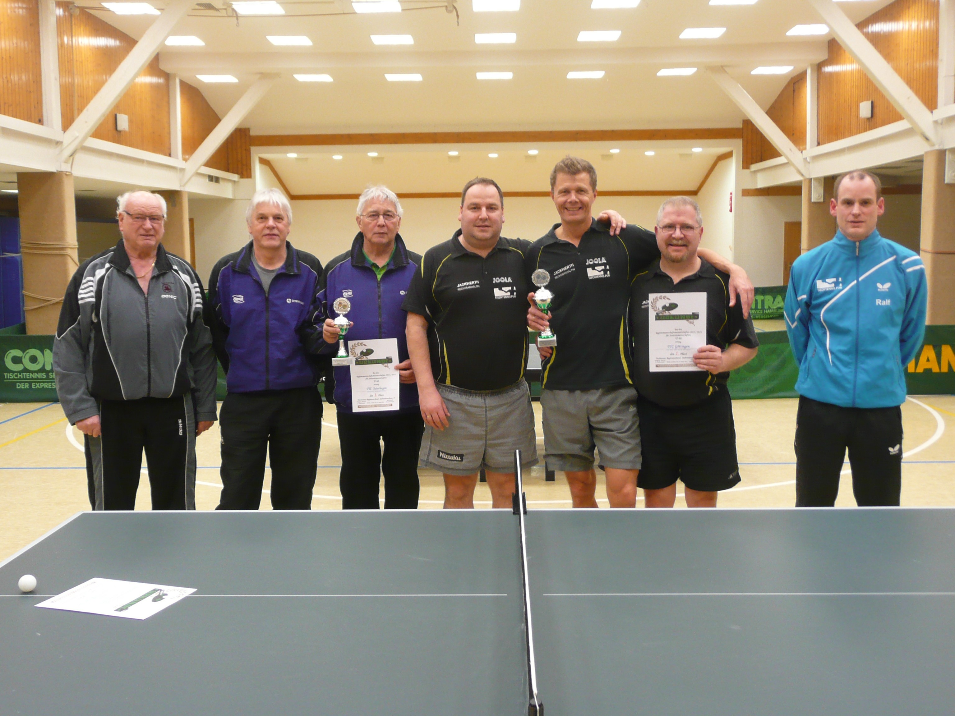 Für die Endrunde der Seniorenmannschaftsmeisterschaften Ü50 hatten sich TTV Scharzfeld (4:0 gegen Tettenborn), TTC Hattorf (kampflos gegen Friesen Walkenried) TTV Geismar (4:0 gegen Hörden), sowie der Bovender SV (4:0 gegen TTC Herzberg) qualifiziert, wobei letztgenannte Mannschaft bei der Endrunde verletzungsbedingt nicht antreten konnte. In Klammern sind die Ergebnisse der jeweiligen Spiele aus der Vorrunde. Die Begegnungen verliefen äußerst souverän und so konnten sich die Geismarer Spieler Lahmann, Thies und Borth mit 2 gewonnen Partien und nur einem verlorenen Einzel klar als Sieger durchsetzen.