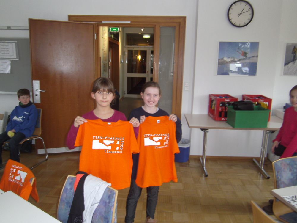 Danach haben alle Teilnehmer Freizeit T-shirts bekommen (siehe Bild). Im Anschluß wurde es sportlich. In der Halle haben wir Bouncerball und Kinball - und gleichzeitig uns gegenseitig - kennengelernt. Nach dem Abendbrot gab es dann noch eine Tischtenniseinheit, bei der wir uns in einem Turnier auch mit den Betreuern messen konnten. Wir sind schon gespannt auf morgen!